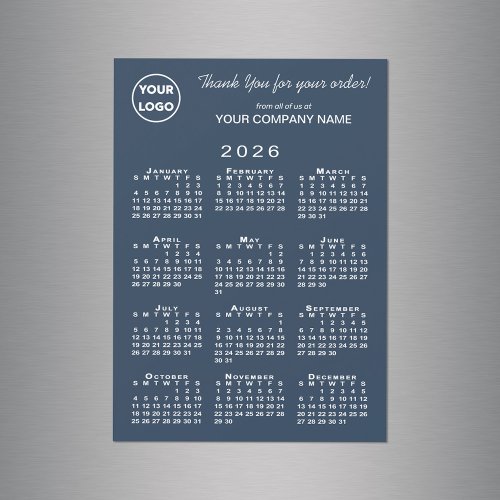 Business Logo Thank You 2026 Calendar Navy Magnet