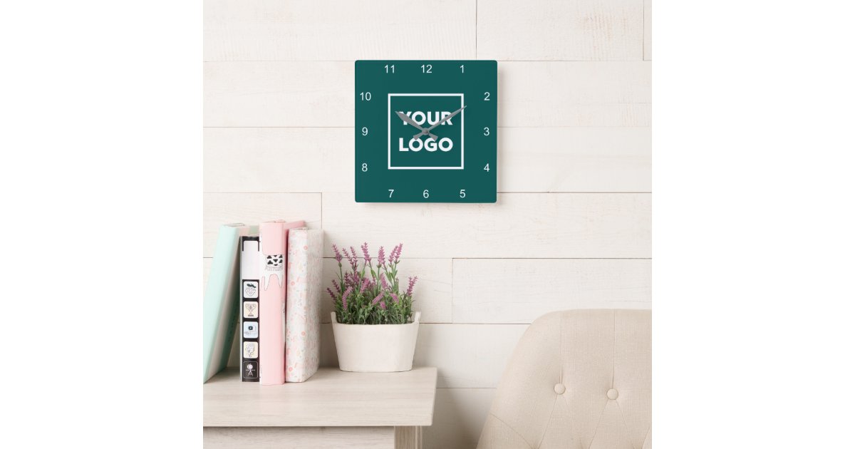 Custom Business Logo on Minimal Teal Background Square Wall Clock