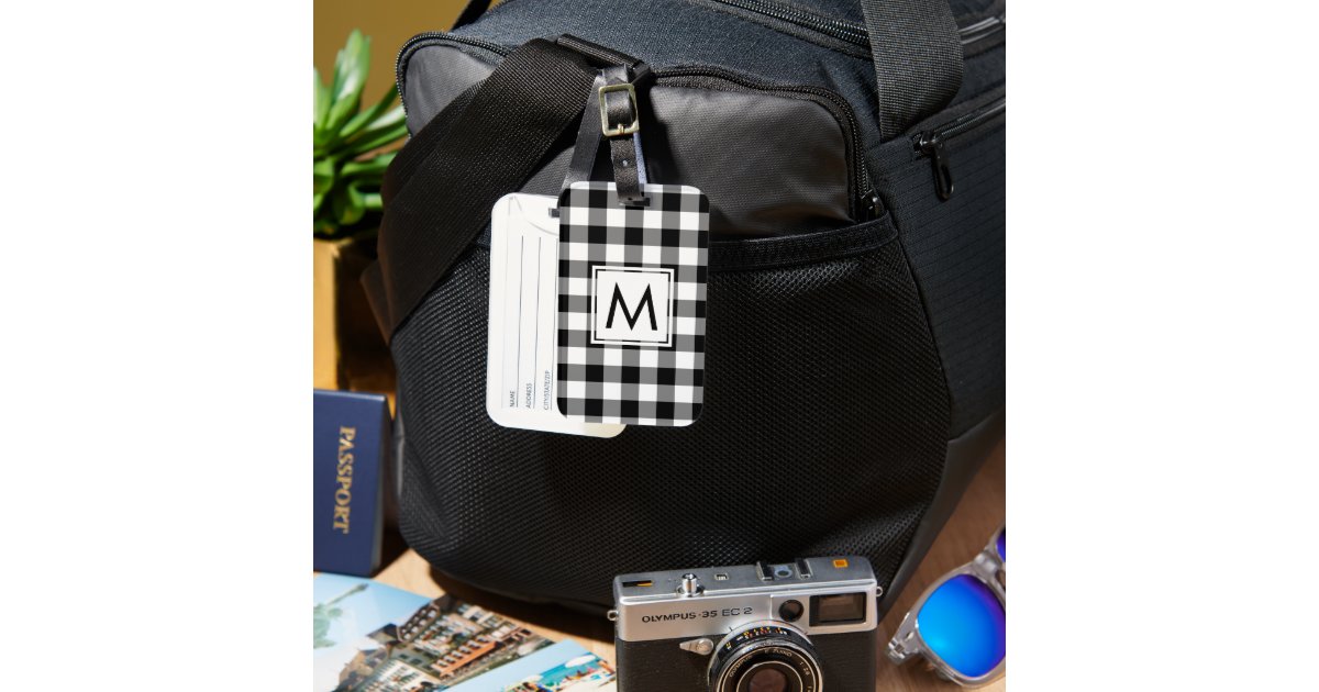 Modern Monogram Black and White Gingham Pattern Luggage Tag