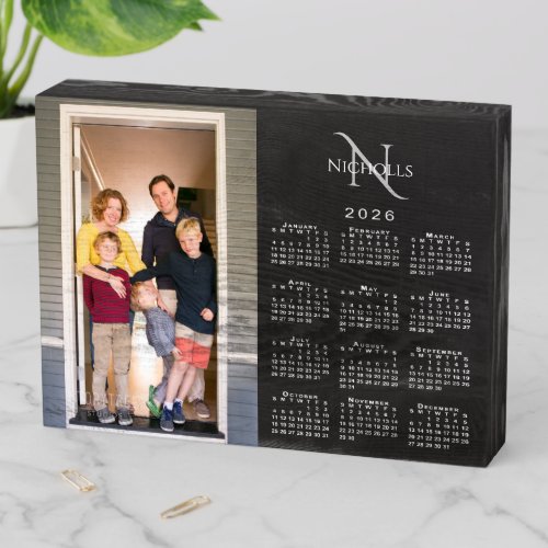 2026 Calendar Custom Photo Monogram Name on Black Wooden Box Sign