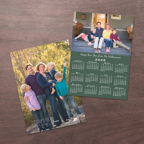 2026 Calendar 2 Photos Dark Green Happy New Year Holiday Card
