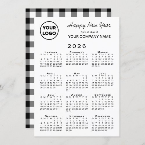 New 2026 Calendar Business Logo Black White Gingham Holiday Card