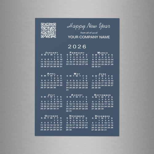 2026 Calendar Business QR Code Navy Holiday Magnet