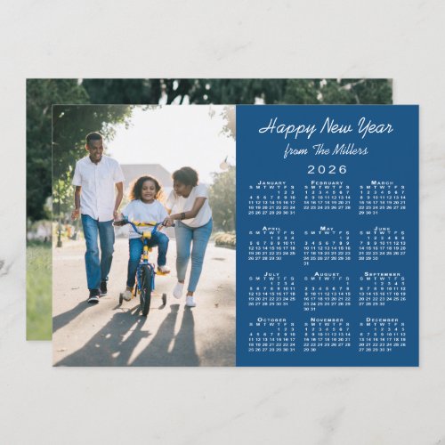 New 2026 Calendar Modern Blue 2 Photo Happy New Year Holiday Card