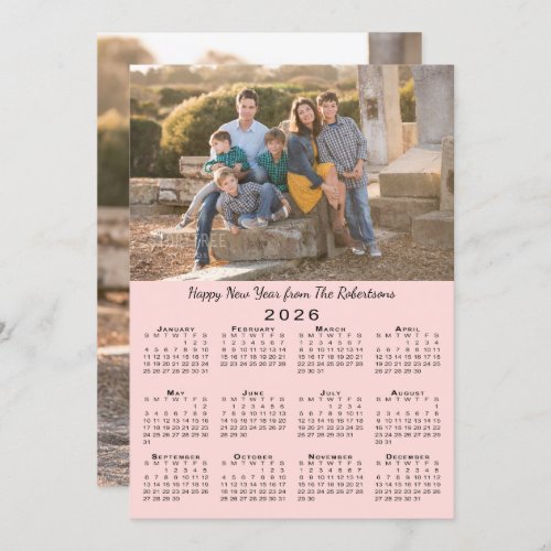 New 2026 Calendar Pink 2 Custom Photos Happy New Year Holiday Card