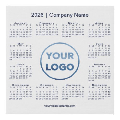 Custom Logo Navy Blue 2026 Calendar on White Faux Canvas Print