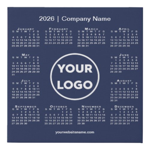 Minimal 2026 Calendar Company Logo Navy Blue Faux Canvas Print