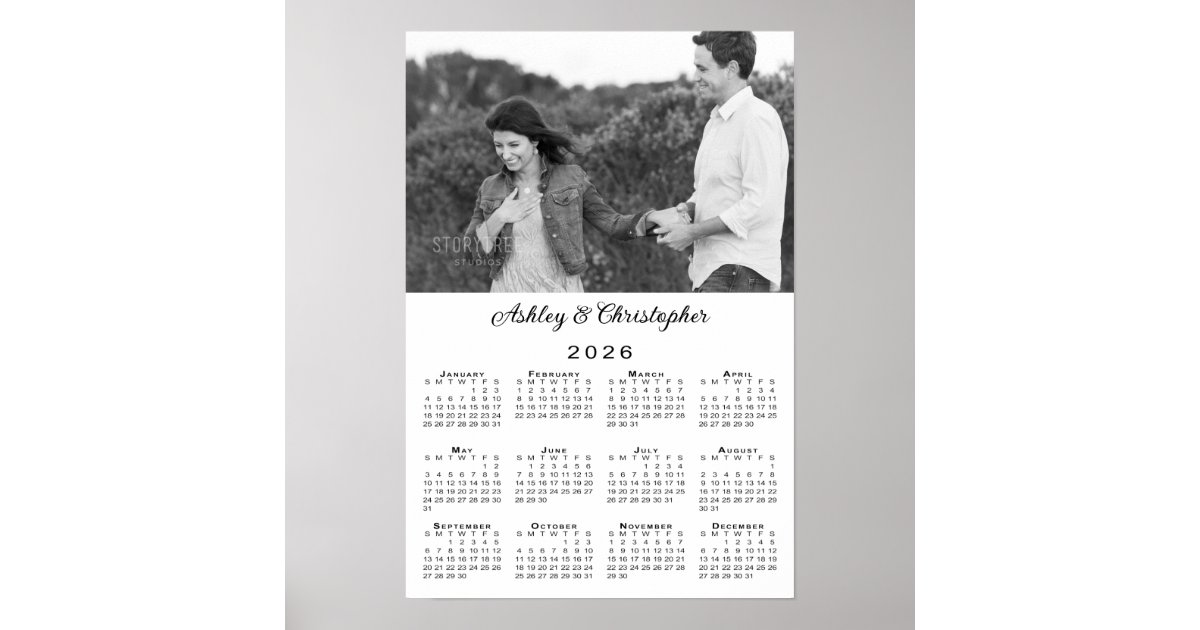 2026 Calendar Custom Photo Monogram Name on Gray Poster