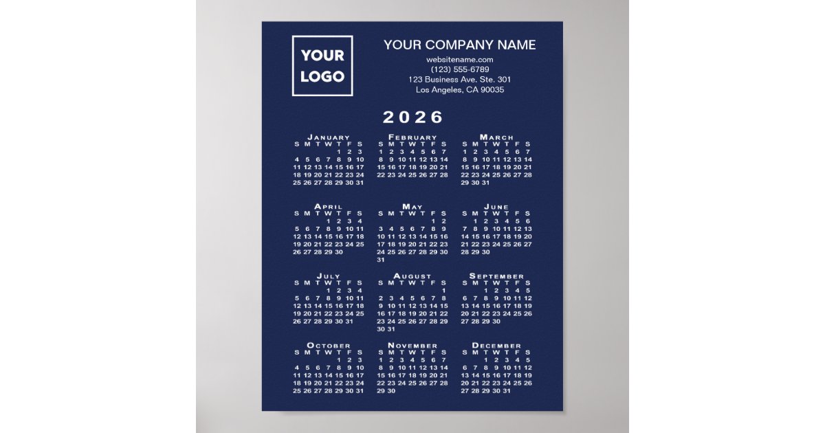 2026 Calendar Business Logo and Text Navy Blue Poster