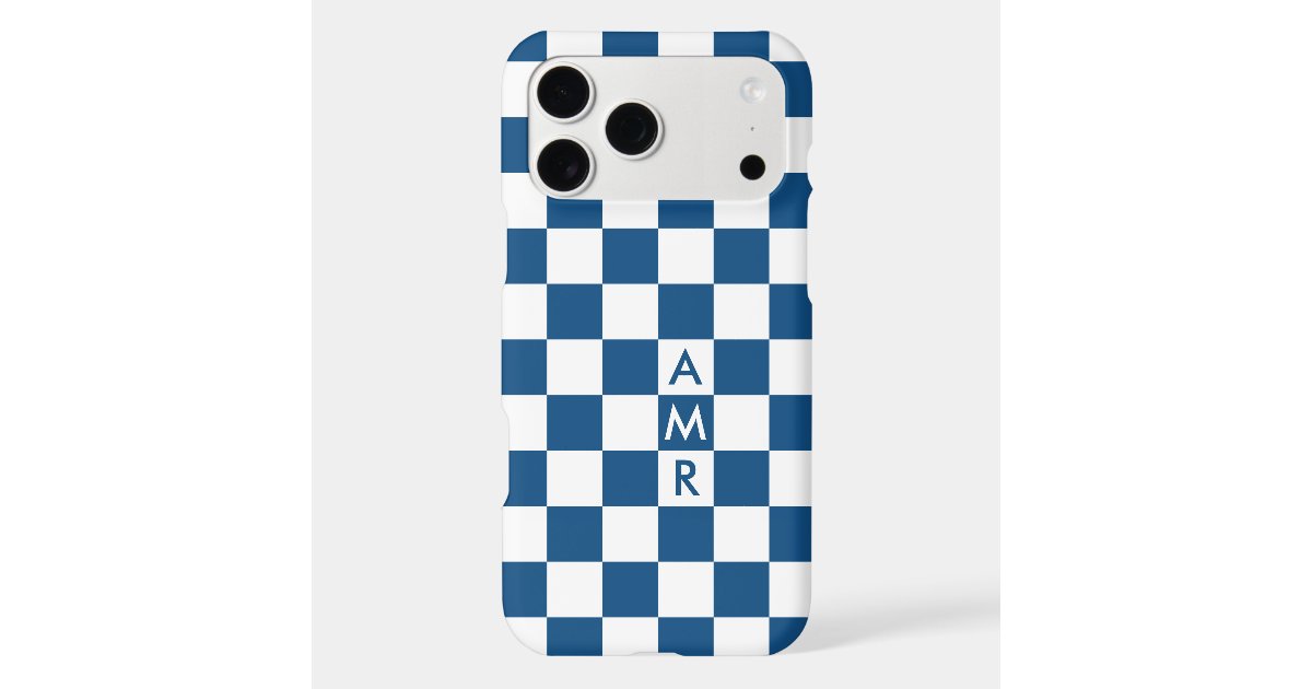 New Blue White Checkered Pattern Custom Monogram iPhone 17 Pro Max Case