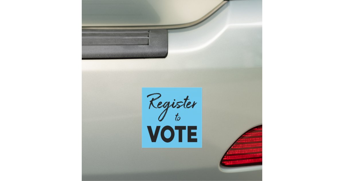 Register to Vote – bold blue watercolor text Bumper Sticker