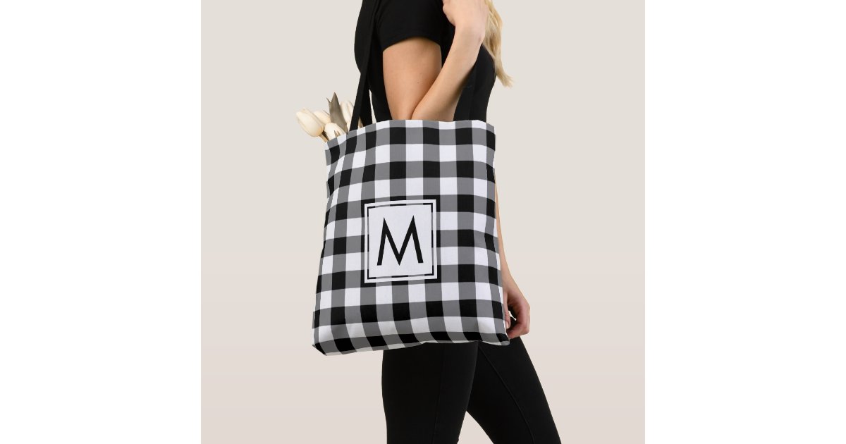 Modern Monogram Black and White Gingham Pattern Tote Bag